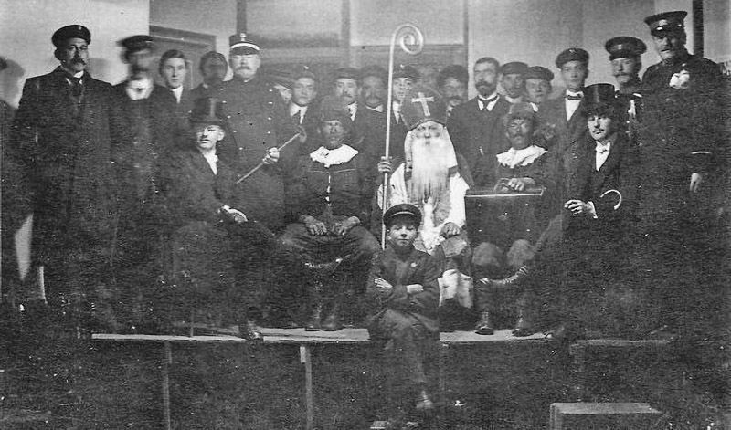 Circa 1920 wordt in Zaal Wilhelmina voor het eerst een foto gemaakt van Sint-Nicolaas en zijn Pietermannen. De links en rechts gezeten heren met hoge hoed zullen als kamerheer gefungeerd hebben. Geheel links staat de winkelier Frans van Bernebeek, tevens voorzitter van de fanfare; waarvan zeker tien leden aanwezig zijn. Links de veldwachter Zweers en rechts een marechaussee en een rijksveldwachter.