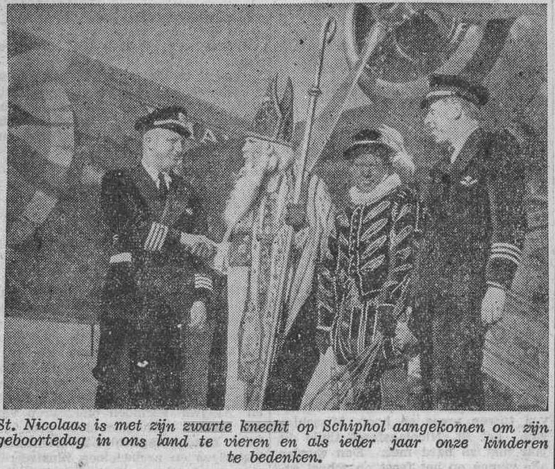 St. Nicolaas is met zijn zwarte knecht op Schiphol aangekomen om zijn geboortedag in ons land te vieren en als ieder jaar onze kinderen te bedenken.
