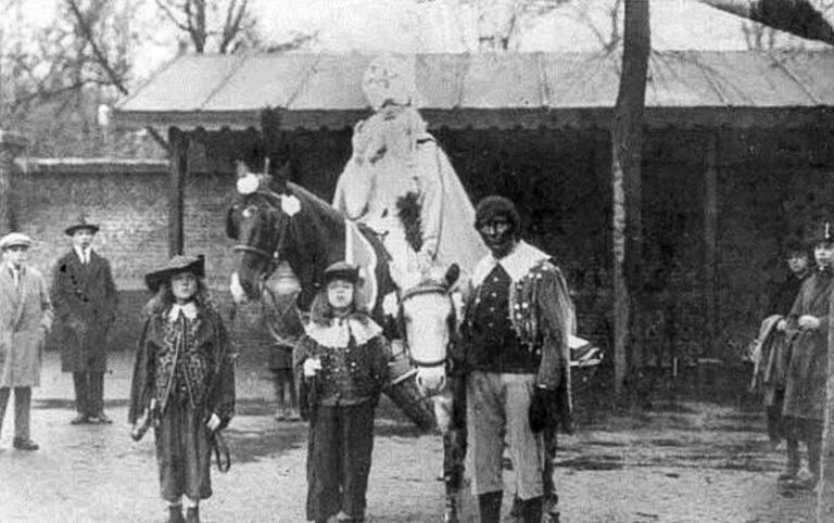 1920 – Zwarte Piet en Sint beiden te paard Onderwerp: herautenintochtpaardPiet op paardroe/gardzwart schminkTijd: 1901-1950Regio: NederlandZuid: Zeeland, Noord-Brabant, LimburgSoort: foto Lees meer