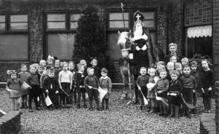 1948 – Sint met zwartgeschminkte figuur Onderwerp: paardzak/mandzwart schminkTijd: 1901-1950Regio: NederlandZuid: Zeeland, Noord-Brabant, LimburgSoort: foto Lees meer