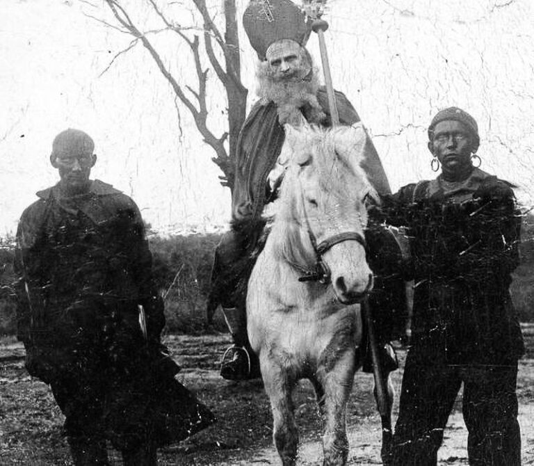 1948 – Pieten met maskers, roe, ketting Onderwerp: intochtkettingmeerdere Pietenpaardroe/gardmaskeradeTijd: 1901-1950Regio: NederlandWest: Noord-Holland, Zuid-Holland, UtrechtSoort: foto Lees meer